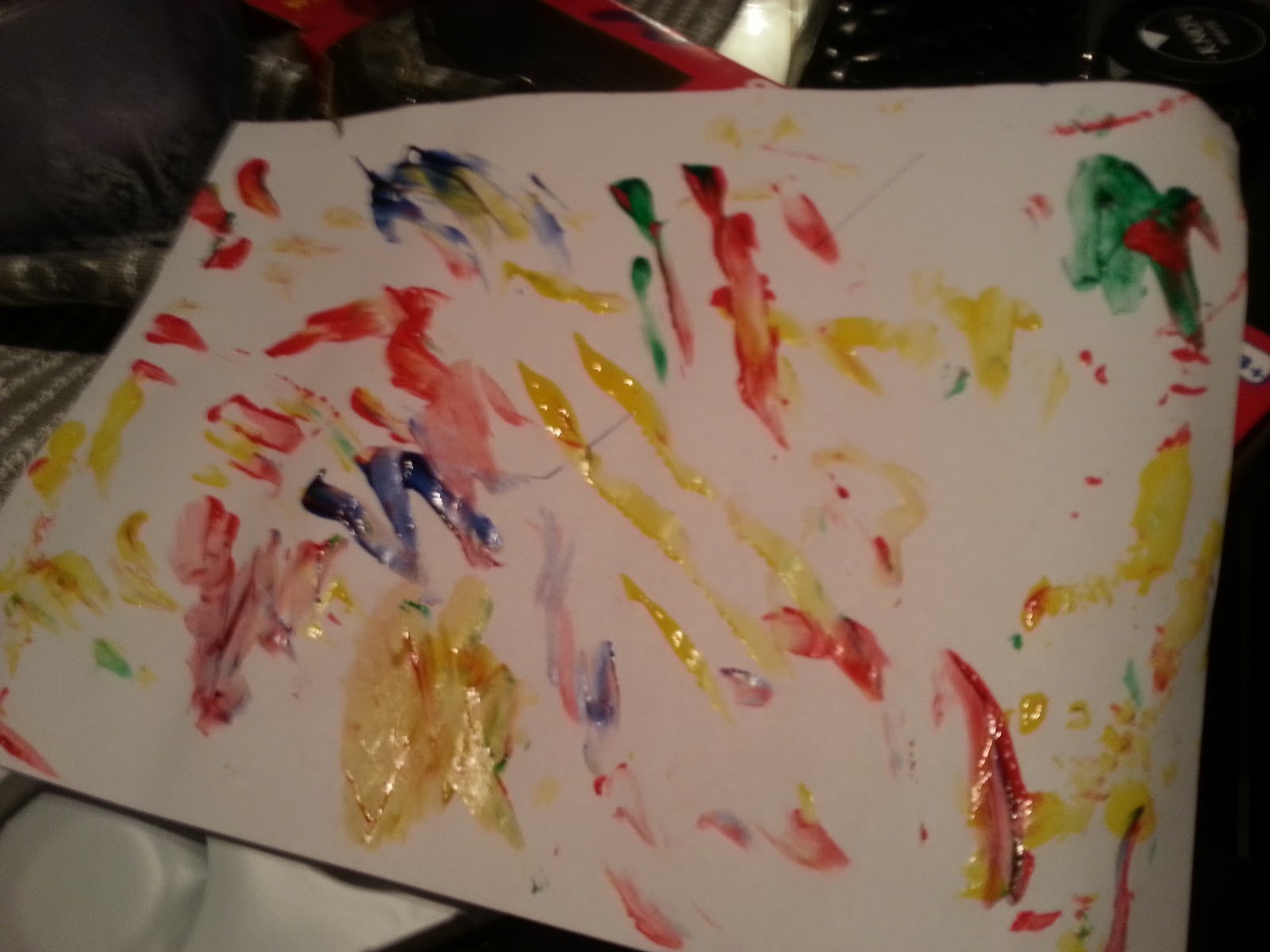 Vi har varit och köpt fingerfärg åt Neo idag. Roligt! Han har även ritat med tusch idag och då kladdade han i panna plus att han har blåöga sen förra helgen då han ramlade.